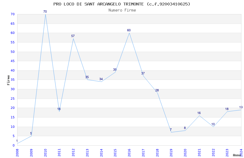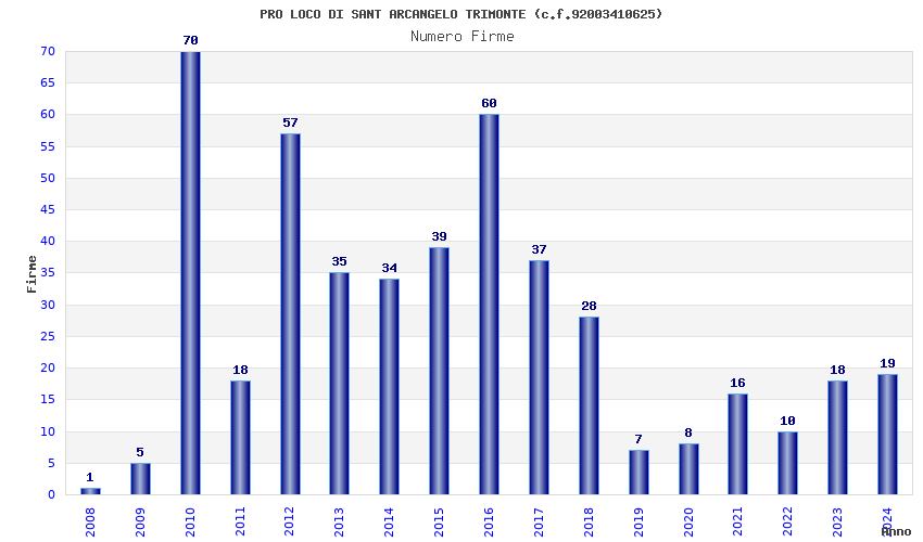 | Anno | Firme | Importi | Media | Naz. | Reg. | Prov. | Comu. |