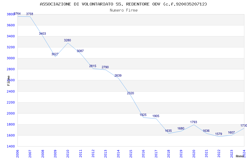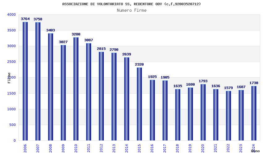 | Anno | Firme | Importi | Media | Naz. | Reg. | Prov. | Comu. |