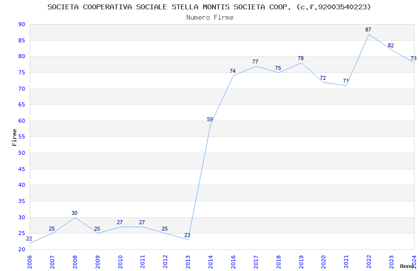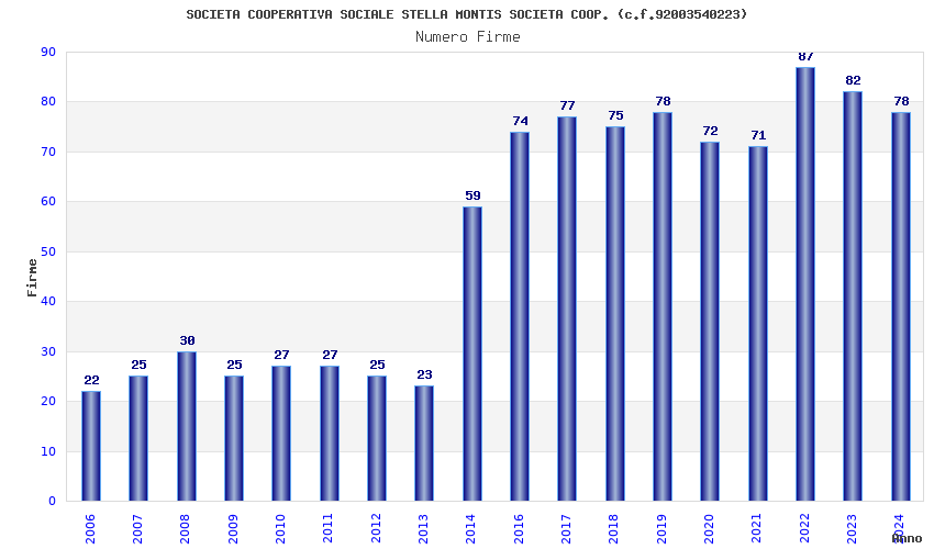 | 2022 | 87 | 2.406,09 | 27,66 | 20.127 | 556 | 257 | 3 |