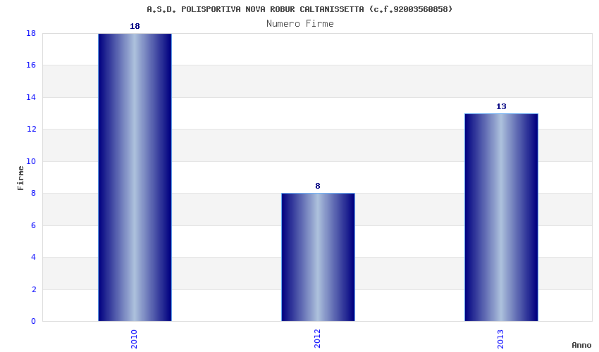 | Anno | Firme | Importi | Media | Naz. | Reg. | Prov. | Comu. |