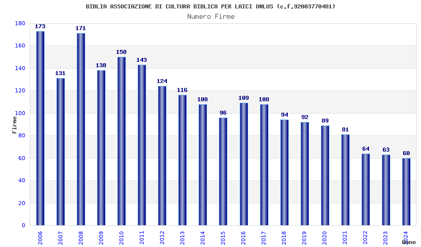 | Anno | Firme | Importi | Media | Naz. | Reg. | Prov. | Comu. |