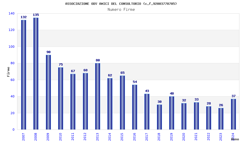 | Anno | Firme | Importi | Media | Naz. | Reg. | Prov. | Comu. |