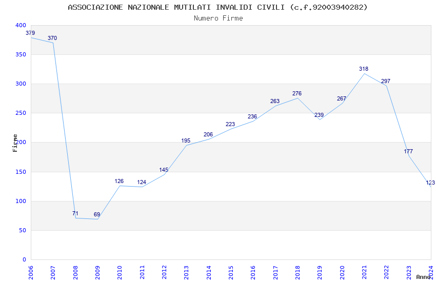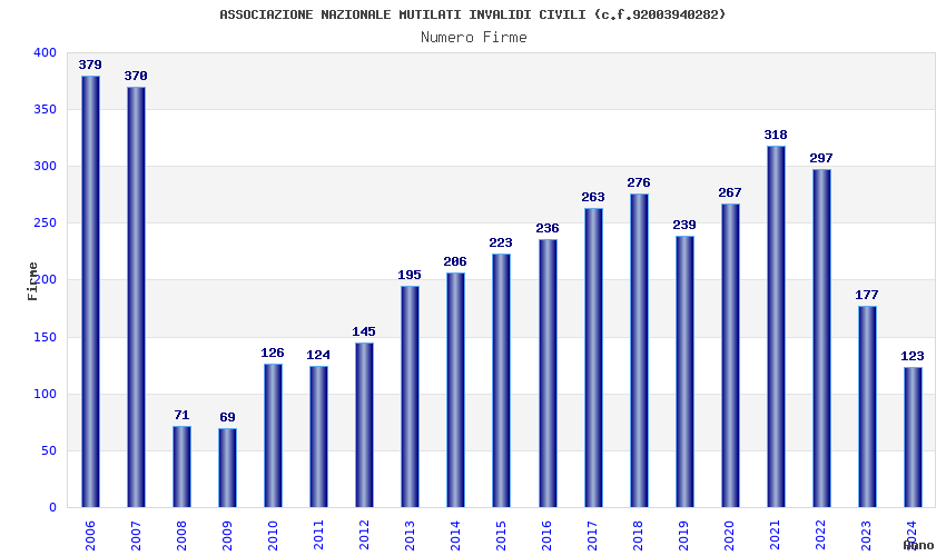 | Anno | Firme | Importi | Media | Naz. | Reg. | Prov. | Comu. |