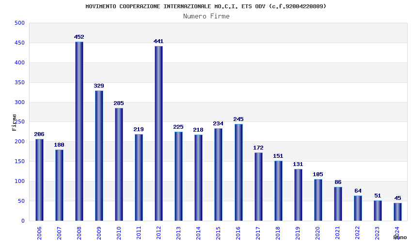 | Anno | Firme | Importi | Media | Naz. | Reg. | Prov. | Comu. |