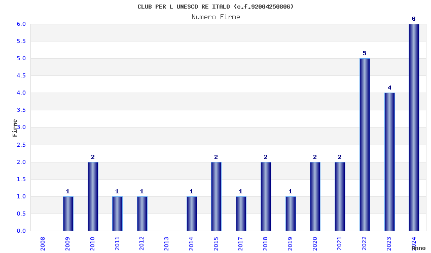 | Anno | Firme | Importi | Media | Naz. | Reg. | Prov. | Comu. |