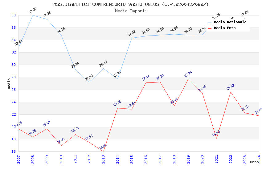 | Anno | Firme | Importi | Media | Naz. | Reg. | Prov. | Comu. |