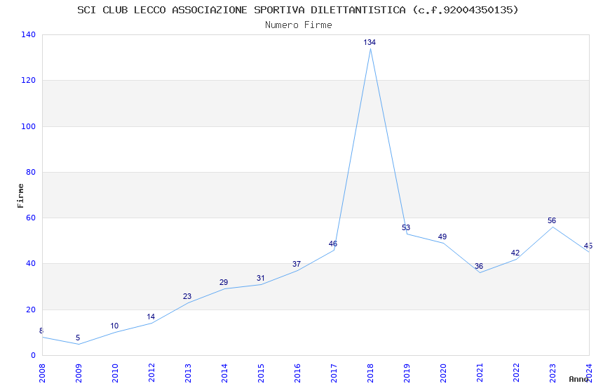 | 2018 | 134 | 34.362,37 | 256,44 | 1.107 | 285 | 4 | 1 |
