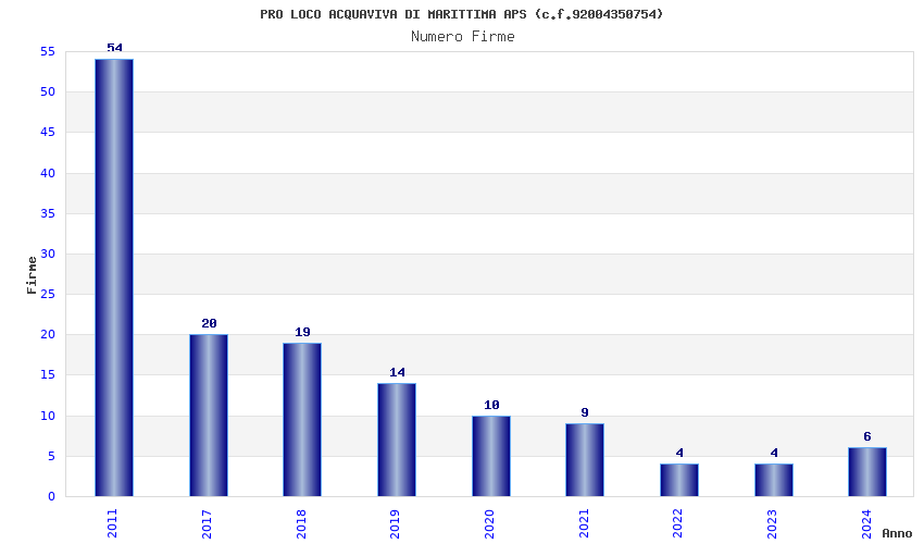 | Anno | Firme | Importi | Media | Naz. | Reg. | Prov. | Comu. |