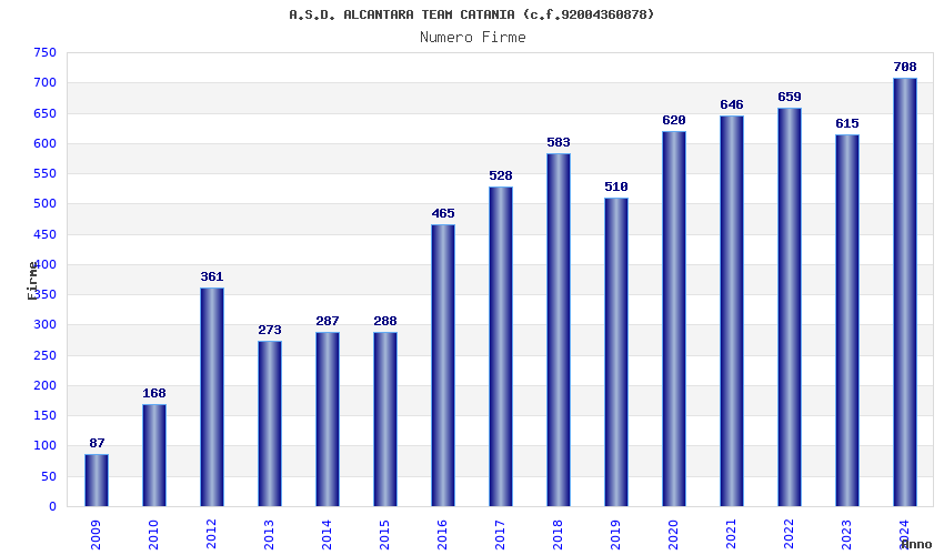 | Anno | Firme | Importi | Media | Naz. | Reg. | Prov. | Comu. |