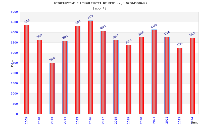 | Anno | Firme | Importi | Media | Naz. | Reg. | Prov. | Comu. |