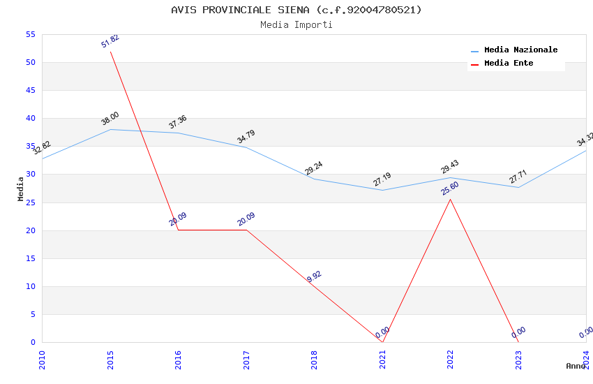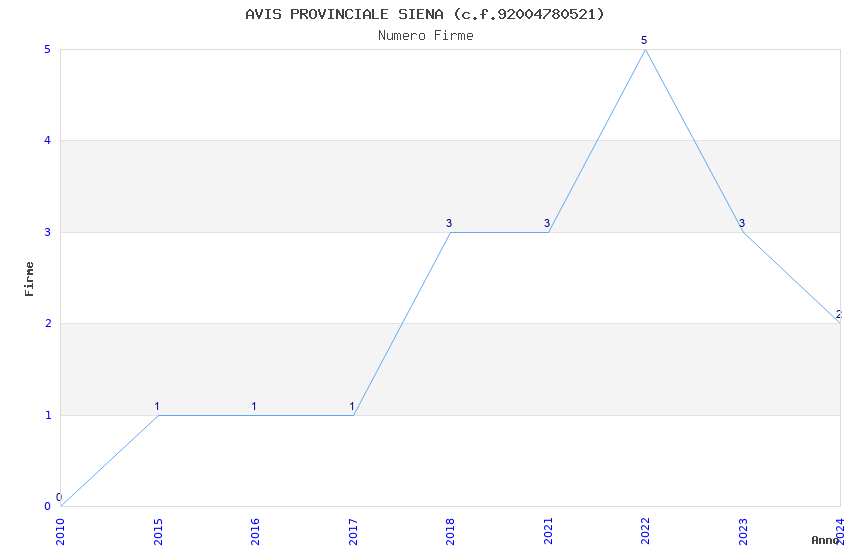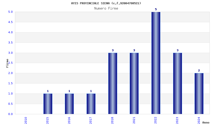 | Anno | Firme | Importi | Media | Naz. | Reg. | Prov. | Comu. |