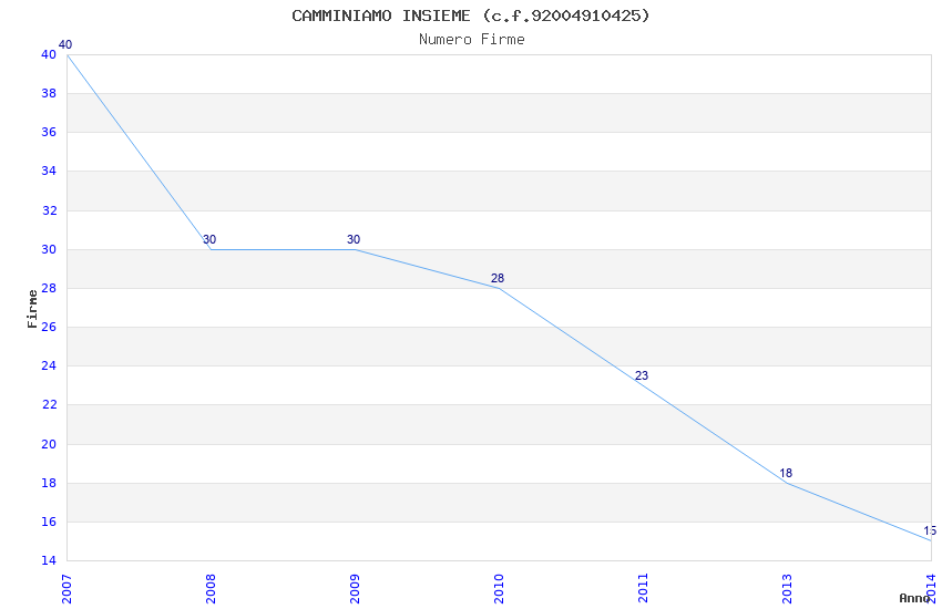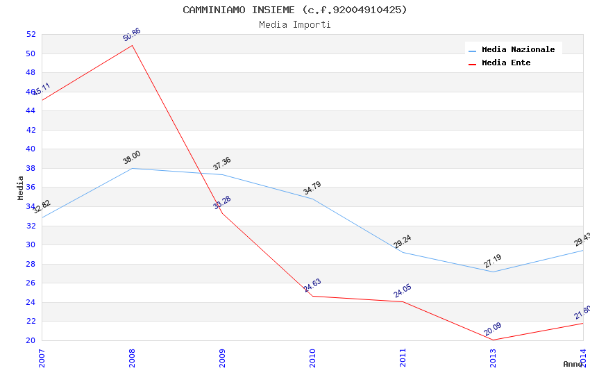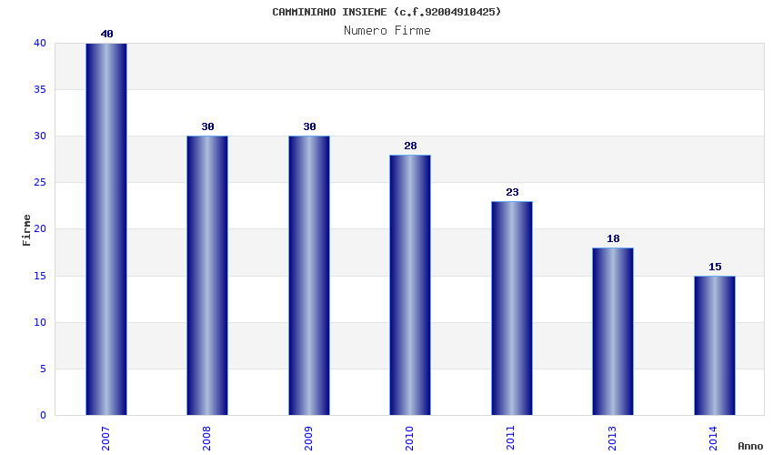| Anno | Firme | Importi | Media | Naz. | Reg. | Prov. | Comu. |