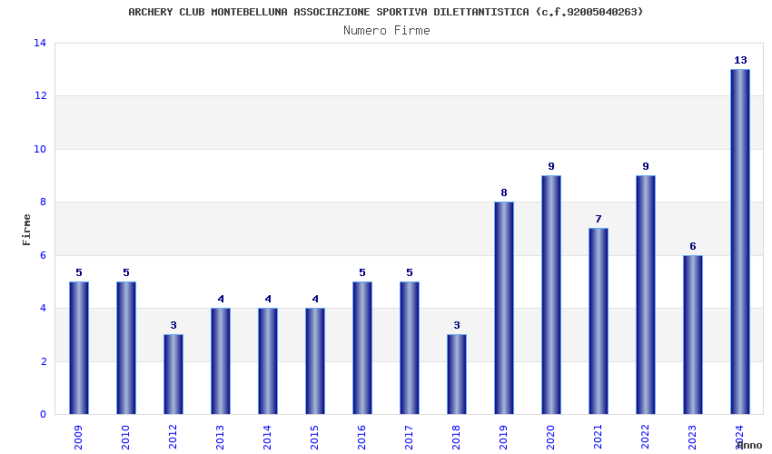| Anno | Firme | Importi | Media | Naz. | Reg. | Prov. | Comu. |