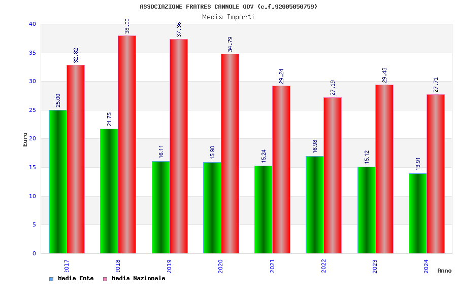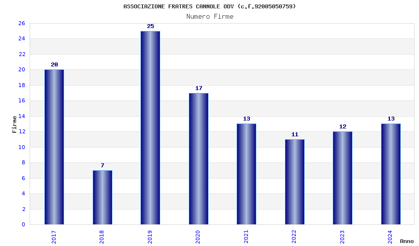 | Anno | Firme | Importi | Media | Naz. | Reg. | Prov. | Comu. |