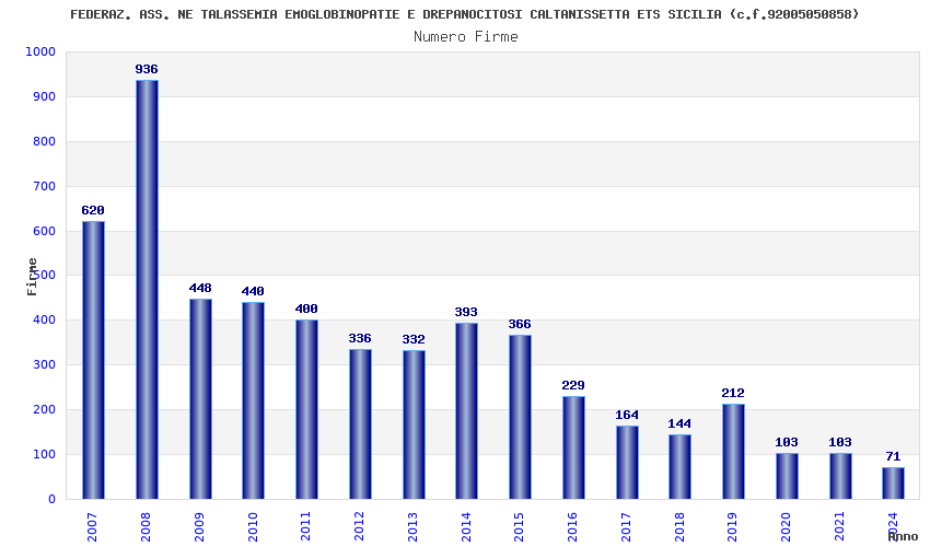 | Anno | Firme | Importi | Media | Naz. | Reg. | Prov. | Comu. |