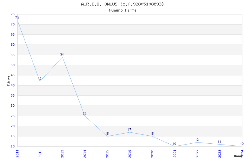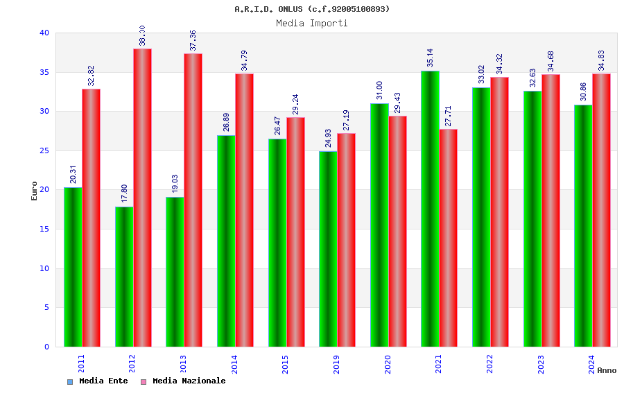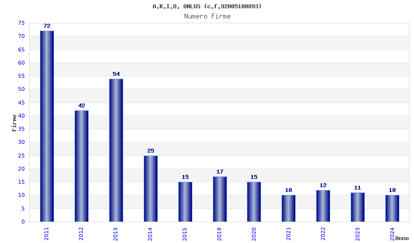 | Anno | Firme | Importi | Media | Naz. | Reg. | Prov. | Comu. |