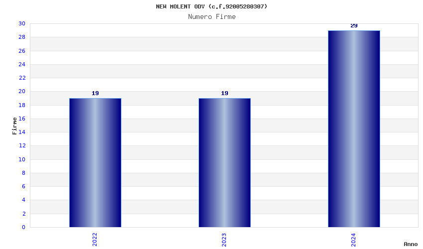 | Anno | Firme | Importi | Media | Naz. | Reg. | Prov. | Comu. |