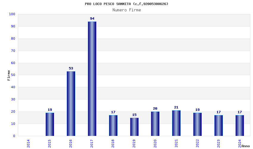 | Anno | Firme | Importi | Media | Naz. | Reg. | Prov. | Comu. |