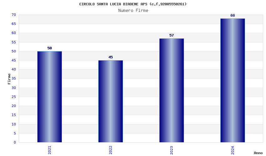 | Anno | Firme | Importi | Media | Naz. | Reg. | Prov. | Comu. |