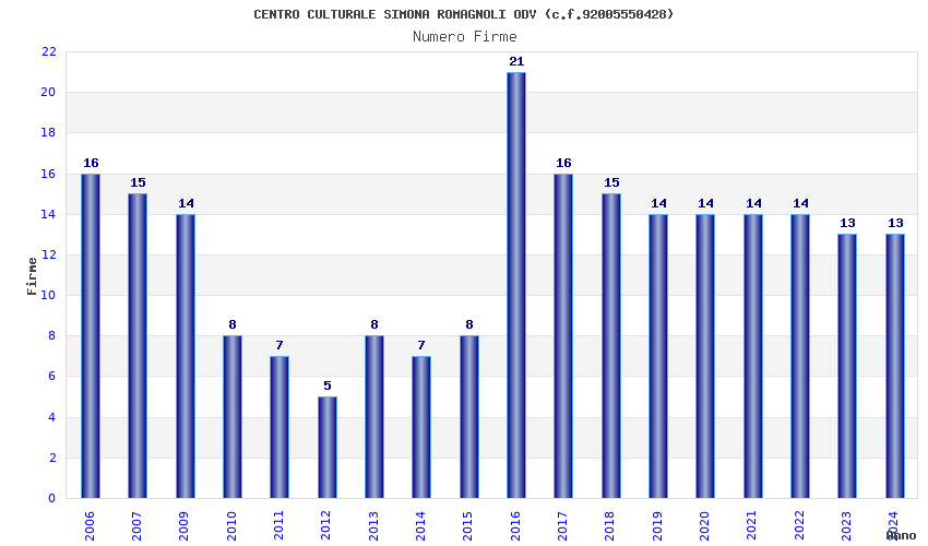 | 2016 | 21 | 1.003,47 | 47,78 | 32.847 | 835 | 320 | 4 |