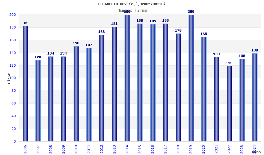 | 2006 | 182 | 6.620,31 | 36,38 | 6.519 | 1.744 | 87 | 17 |