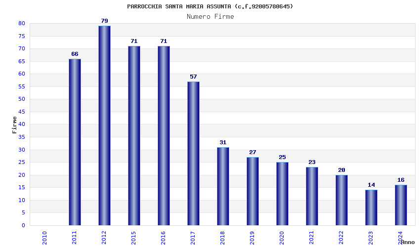 | Anno | Firme | Importi | Media | Naz. | Reg. | Prov. | Comu. |