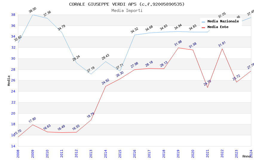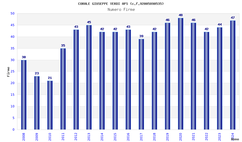 | Anno | Firme | Importi | Media | Naz. | Reg. | Prov. | Comu. |