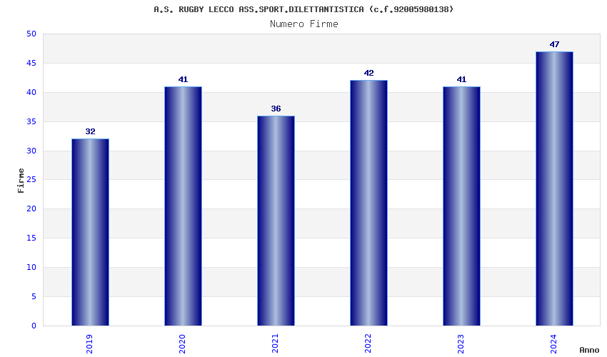 | Anno | Firme | Importi | Media | Naz. | Reg. | Prov. | Comu. |