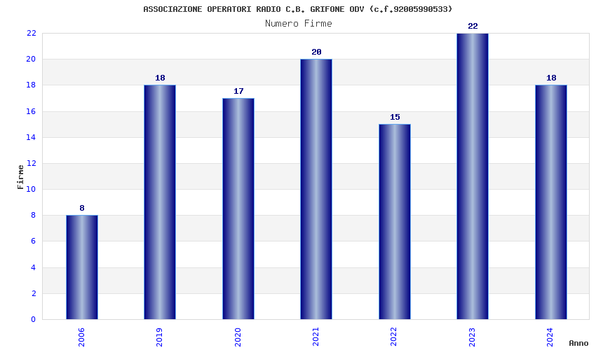| Anno | Firme | Importi | Media | Naz. | Reg. | Prov. | Comu. |