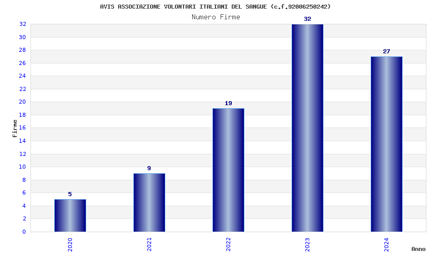 | Anno | Firme | Importi | Media | Naz. | Reg. | Prov. | Comu. |