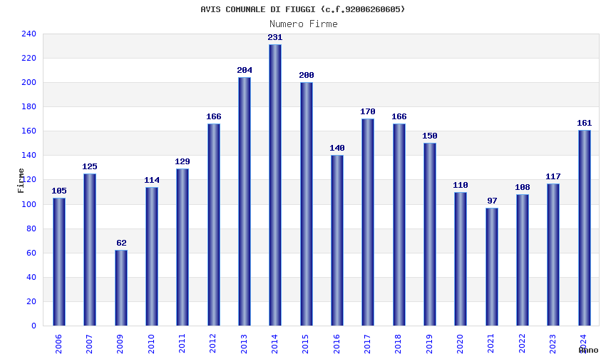 | Anno | Firme | Importi | Media | Naz. | Reg. | Prov. | Comu. |