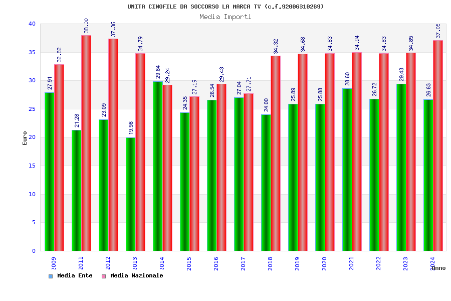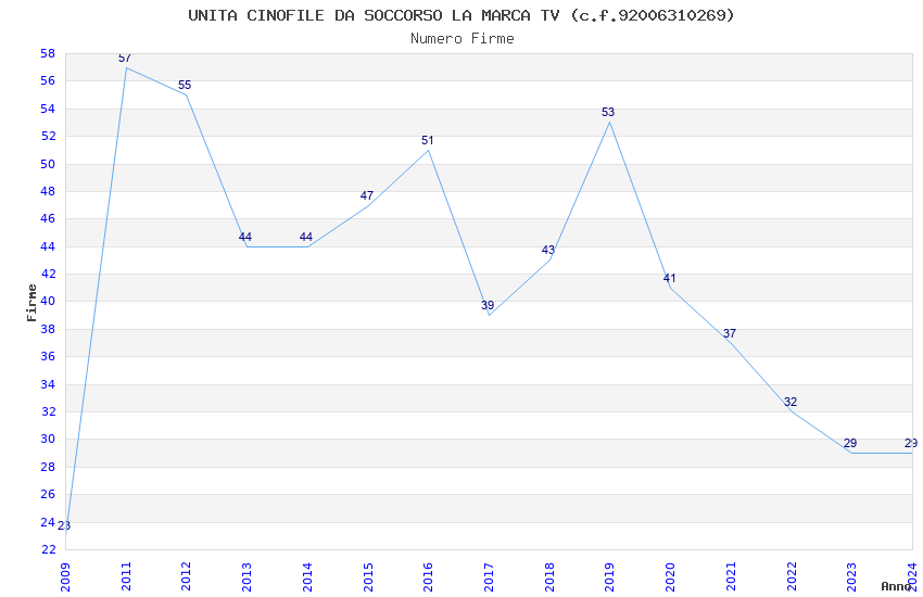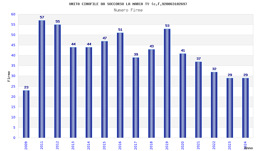 | Anno | Firme | Importi | Media | Naz. | Reg. | Prov. | Comu. |
