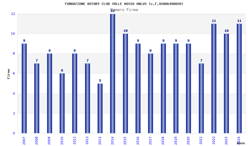 | Anno | Firme | Importi | Media | Naz. | Reg. | Prov. | Comu. |
