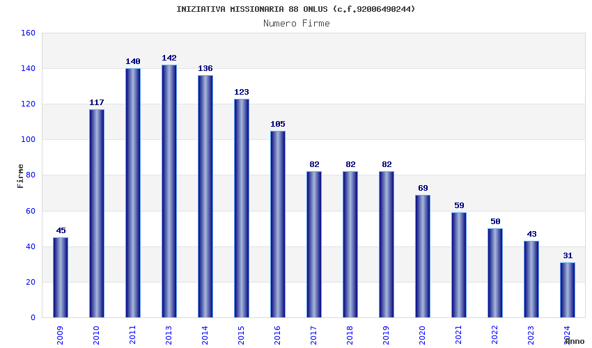 | Anno | Firme | Importi | Media | Naz. | Reg. | Prov. | Comu. |