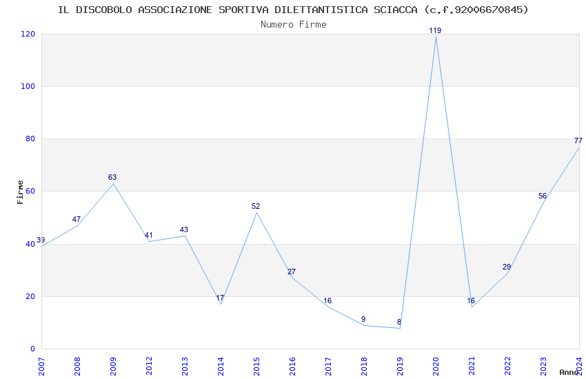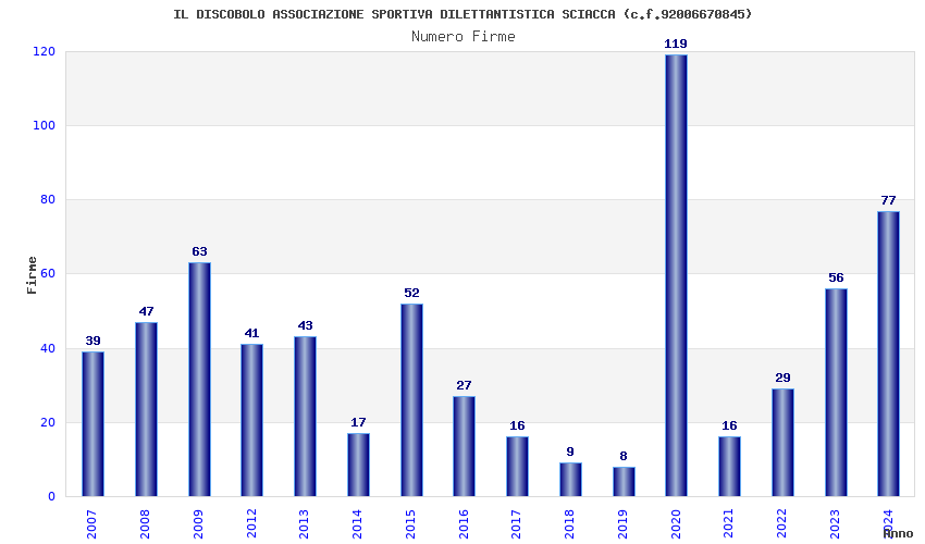 | 2007 | 39 | 760,71 | 19,51 | 18.207 | 893 | 66 | 12 |