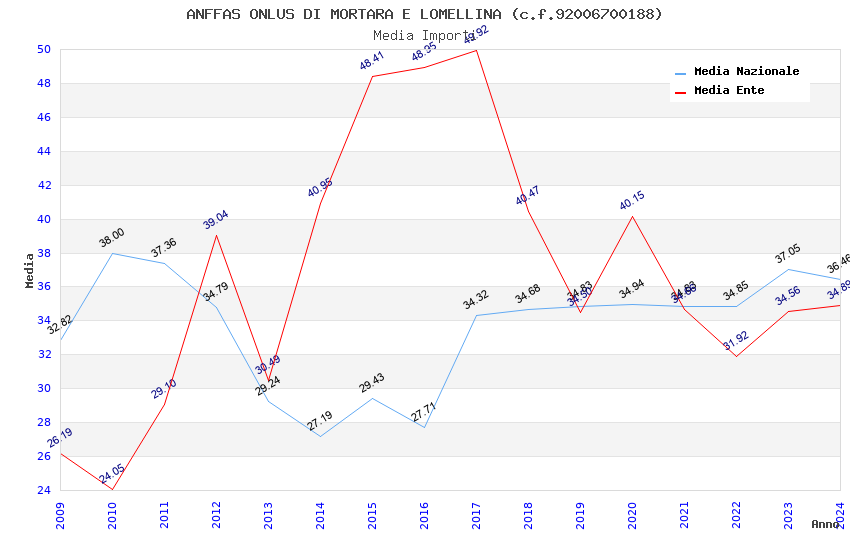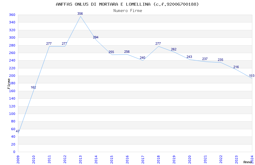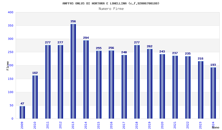 | Anno | Firme | Importi | Media | Naz. | Reg. | Prov. | Comu. |