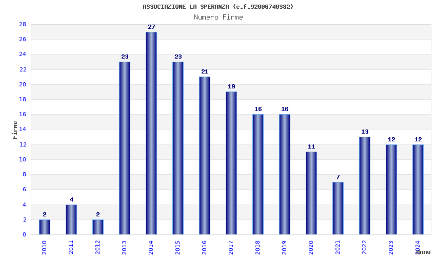 Anno Firme Importi Media Naz. Reg. Prov. Comu.