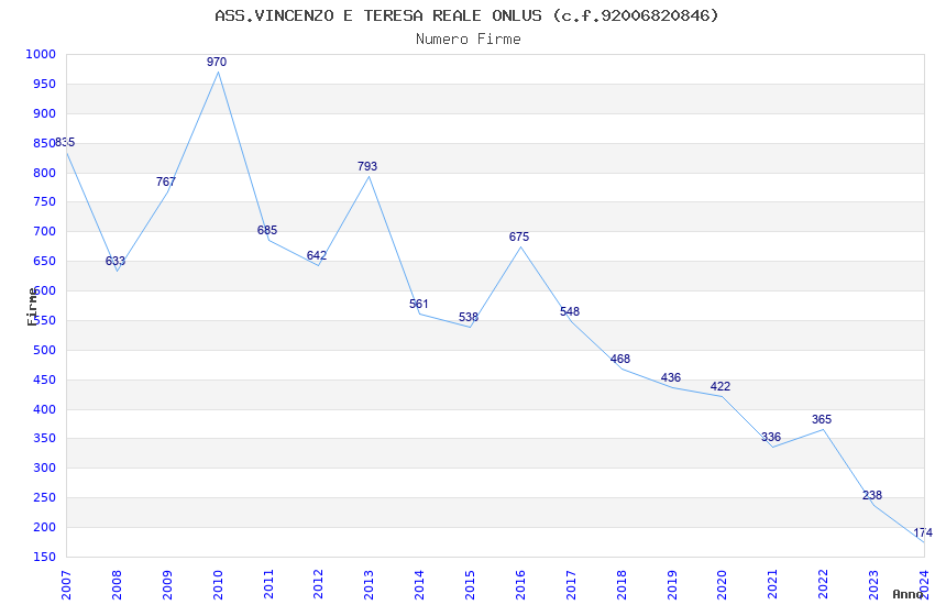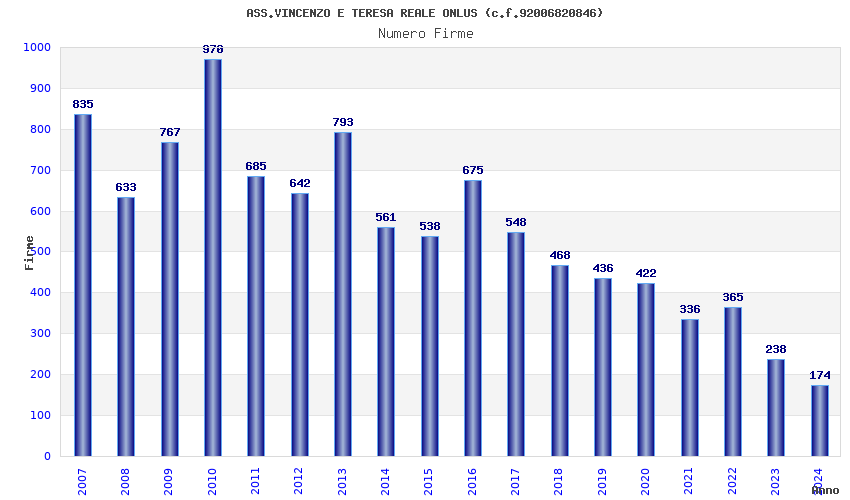 | Anno | Firme | Importi | Media | Naz. | Reg. | Prov. | Comu. |