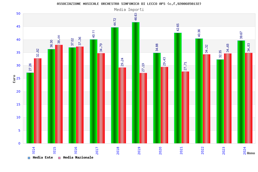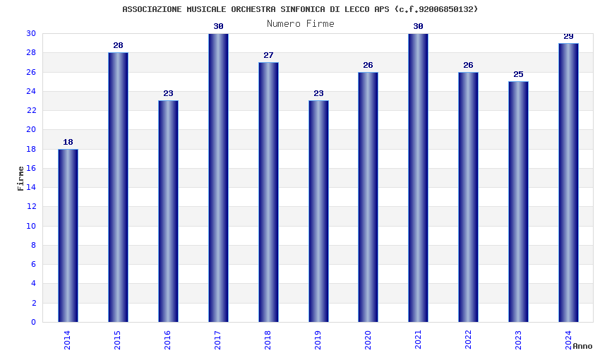 | Anno | Firme | Importi | Media | Naz. | Reg. | Prov. | Comu. |