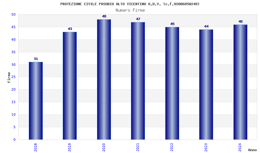 | Anno | Firme | Importi | Media | Naz. | Reg. | Prov. | Comu. |