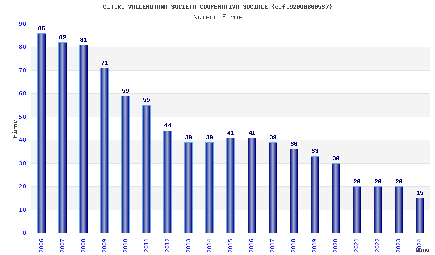 | 2006 | 86 | 2.330,42 | 27,10 | 13.874 | 915 | 45 | 23 |
