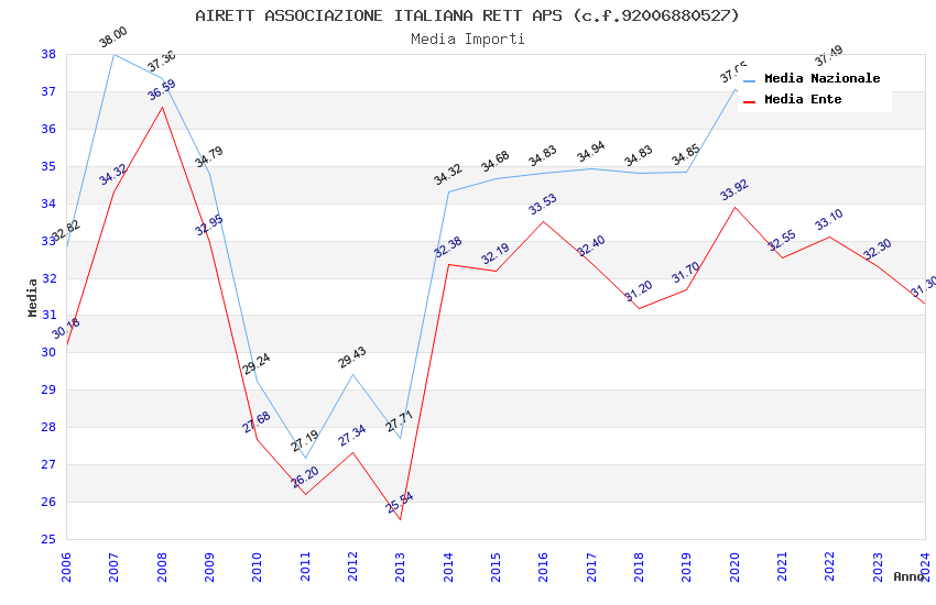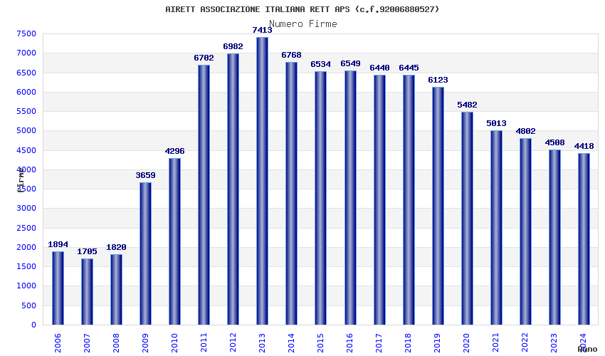 | Anno | Firme | Importi | Media | Naz. | Reg. | Prov. | Comu. |