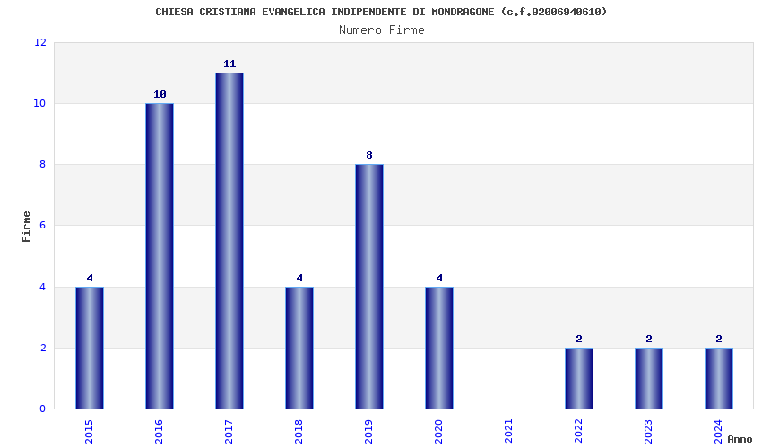 | Anno | Firme | Importi | Media | Naz. | Reg. | Prov. | Comu. |