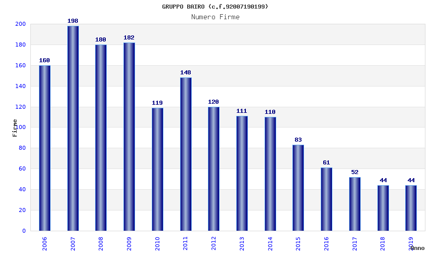 Anno Firme Importi Media Naz. Reg. Prov. Comu.