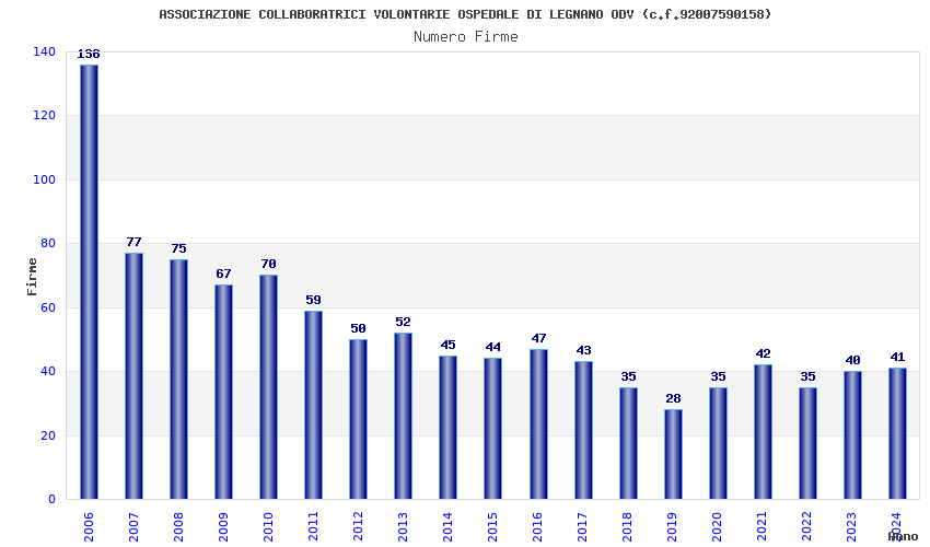 | Anno | Firme | Importi | Media | Naz. | Reg. | Prov. | Comu. |