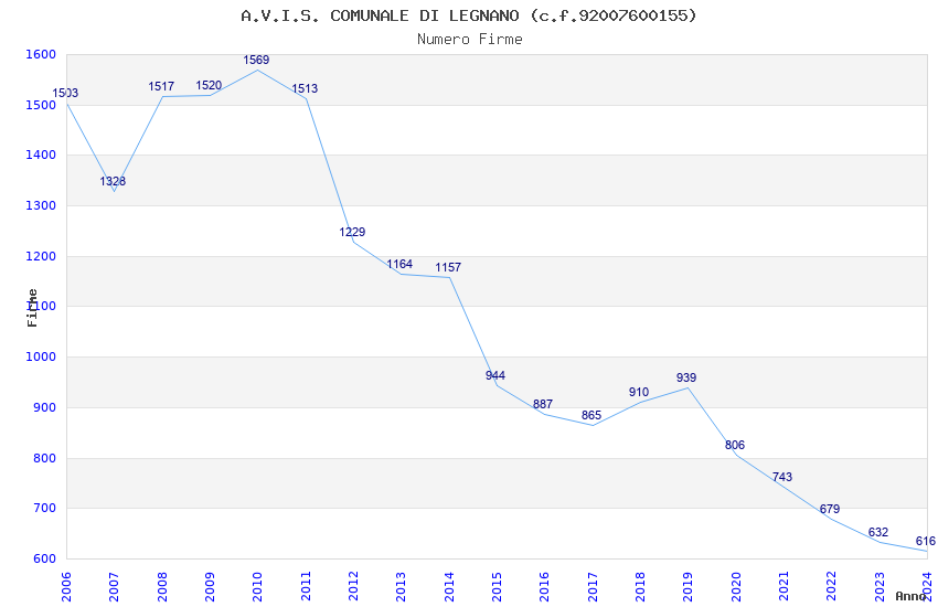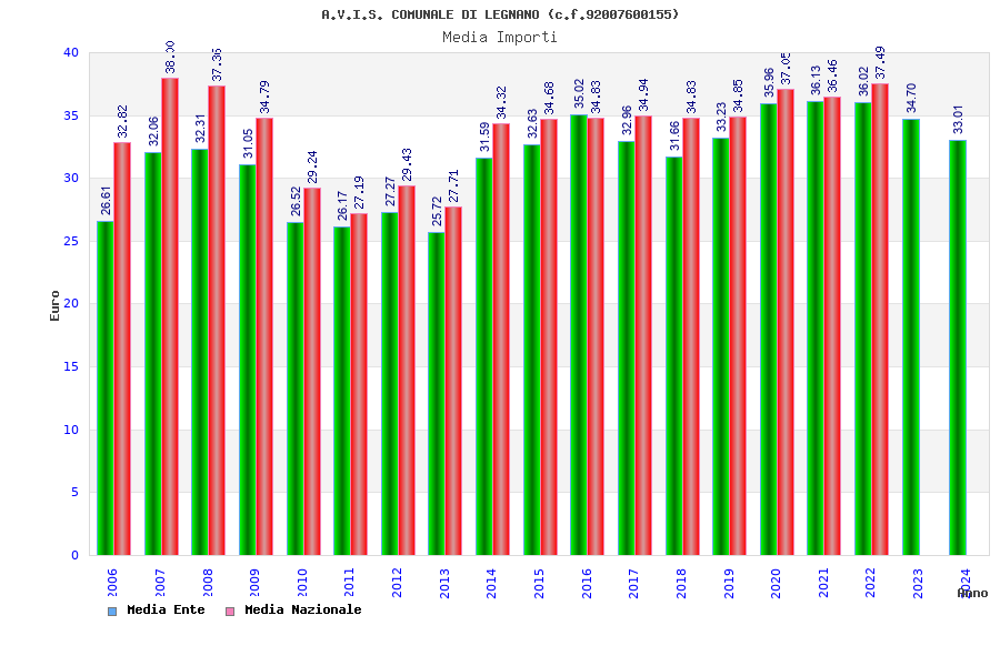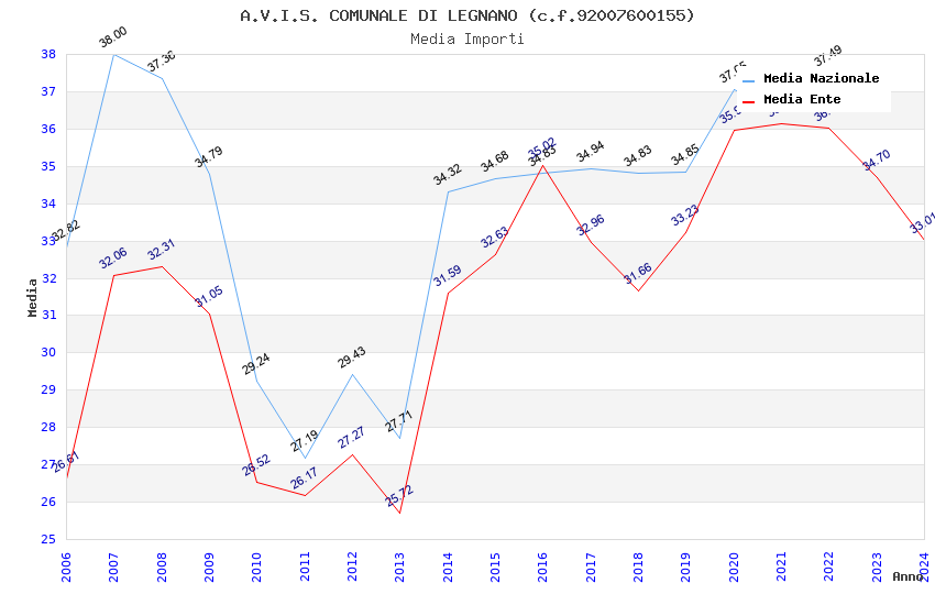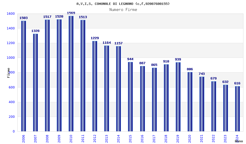 | Anno | Firme | Importi | Media | Naz. | Reg. | Prov. | Comu. |