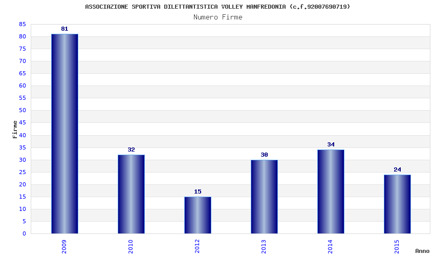 | Anno | Firme | Importi | Media | Naz. | Reg. | Prov. | Comu. |