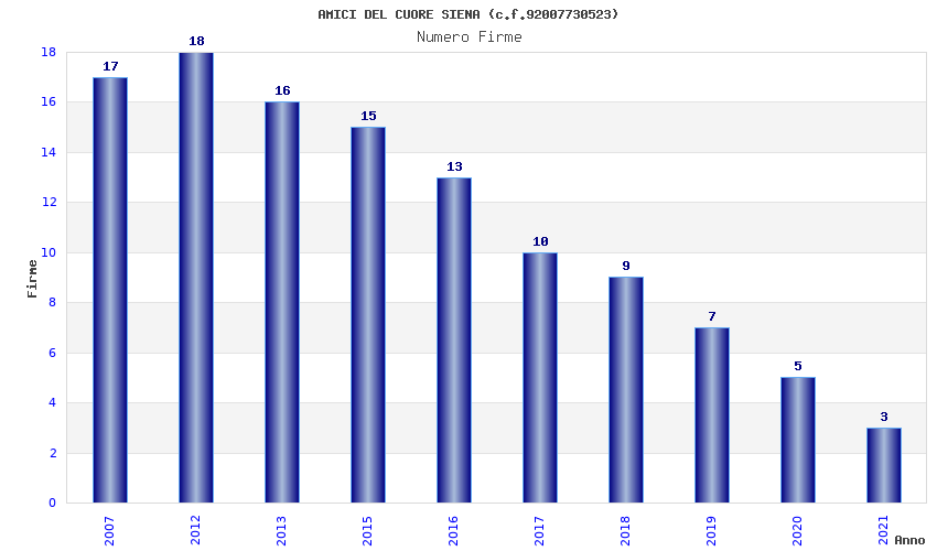 | Anno | Firme | Importi | Media | Naz. | Reg. | Prov. | Comu. |