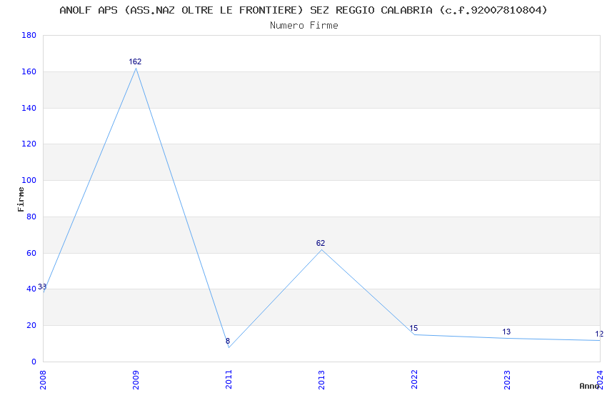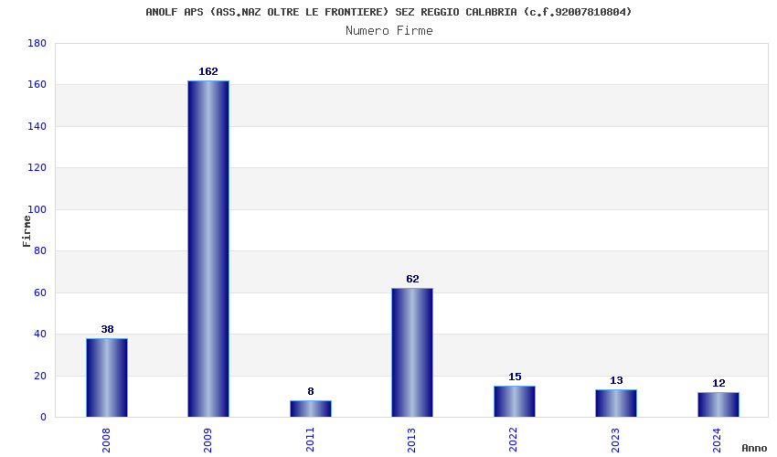 | Anno | Firme | Importi | Media | Naz. | Reg. | Prov. | Comu. |