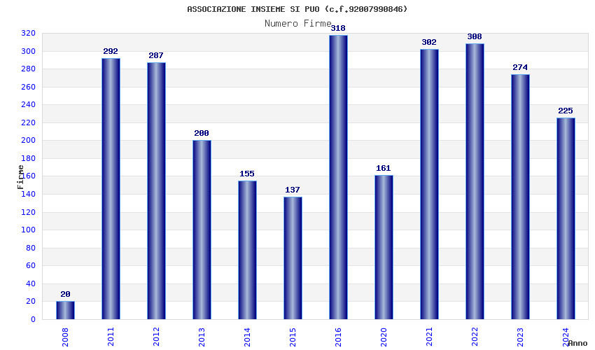 Anno Firme Importi Media Naz. Reg. Prov. Comu.